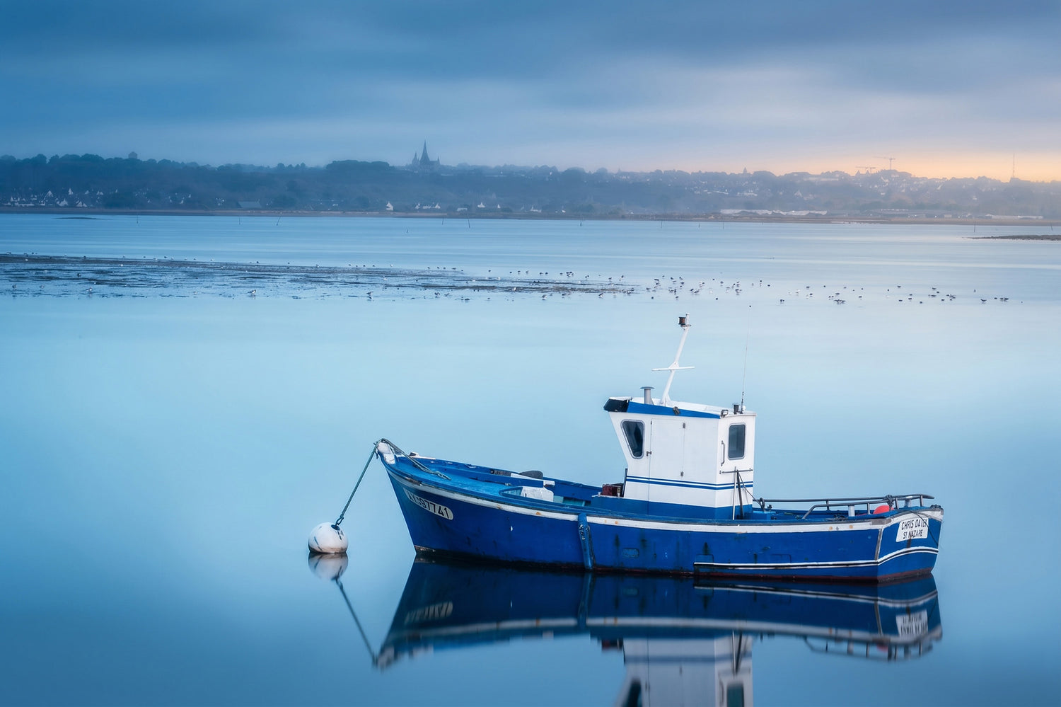 Affiche Bateau de Pêche à Pen Bron – Poster Déco Marine Bleu Zen